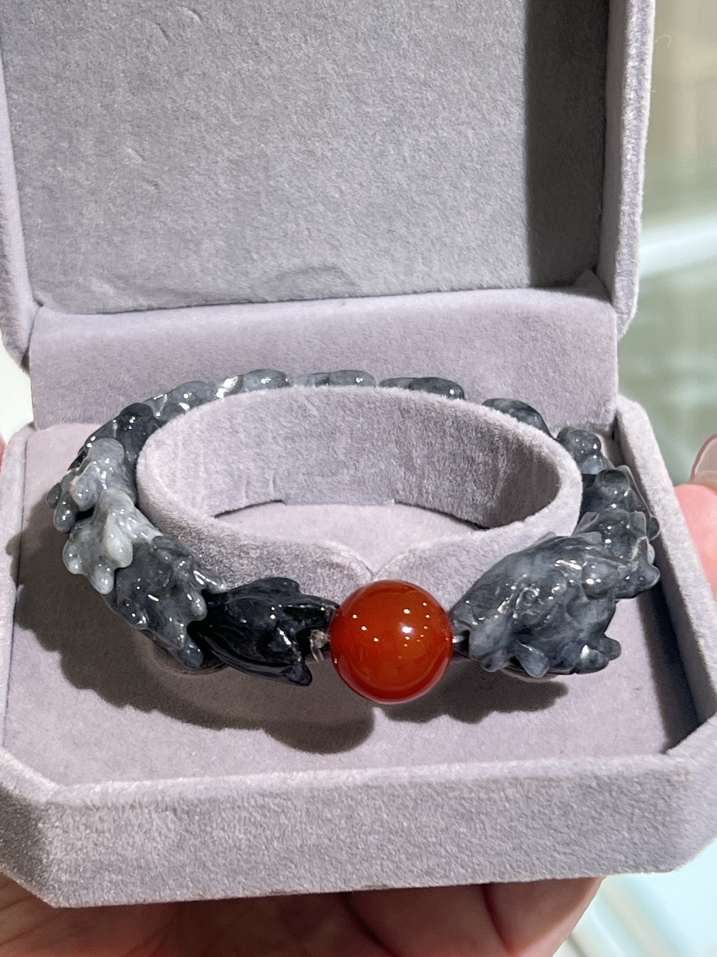 乌鸡翡翠手串(祥龙盘珠)