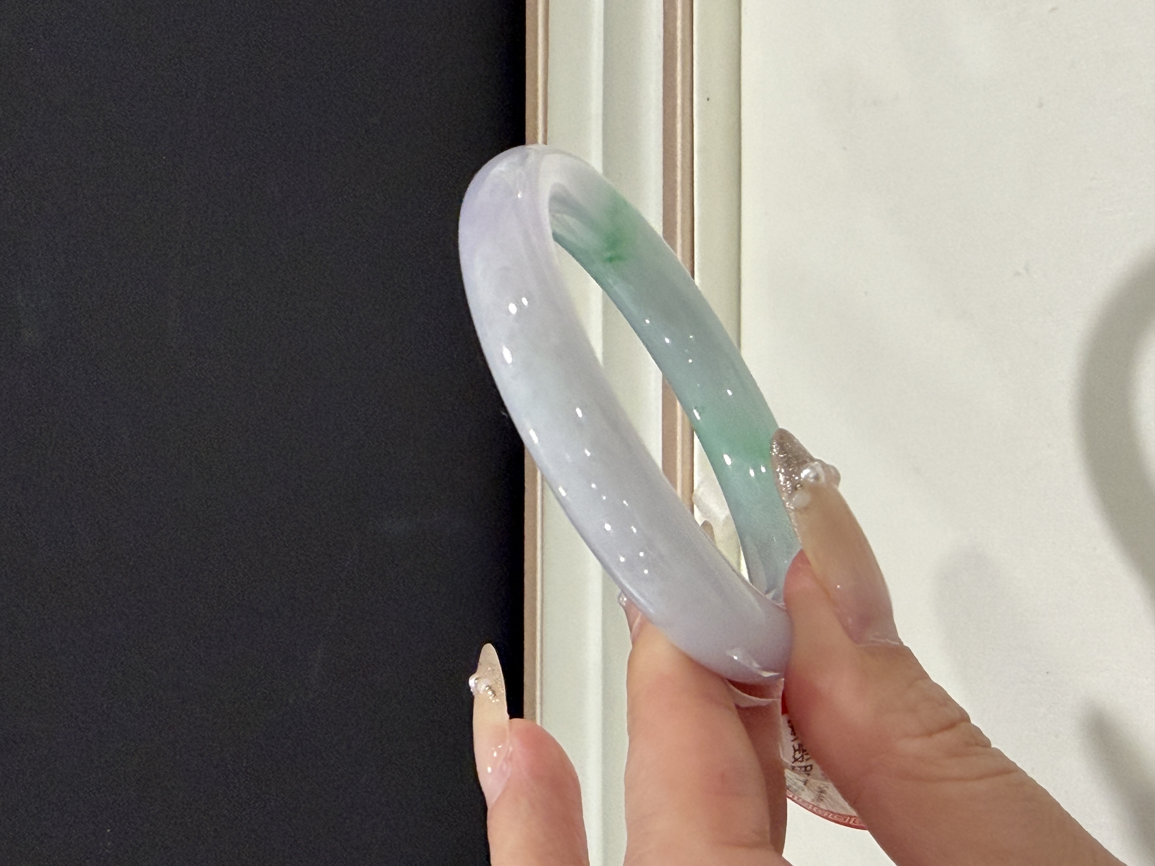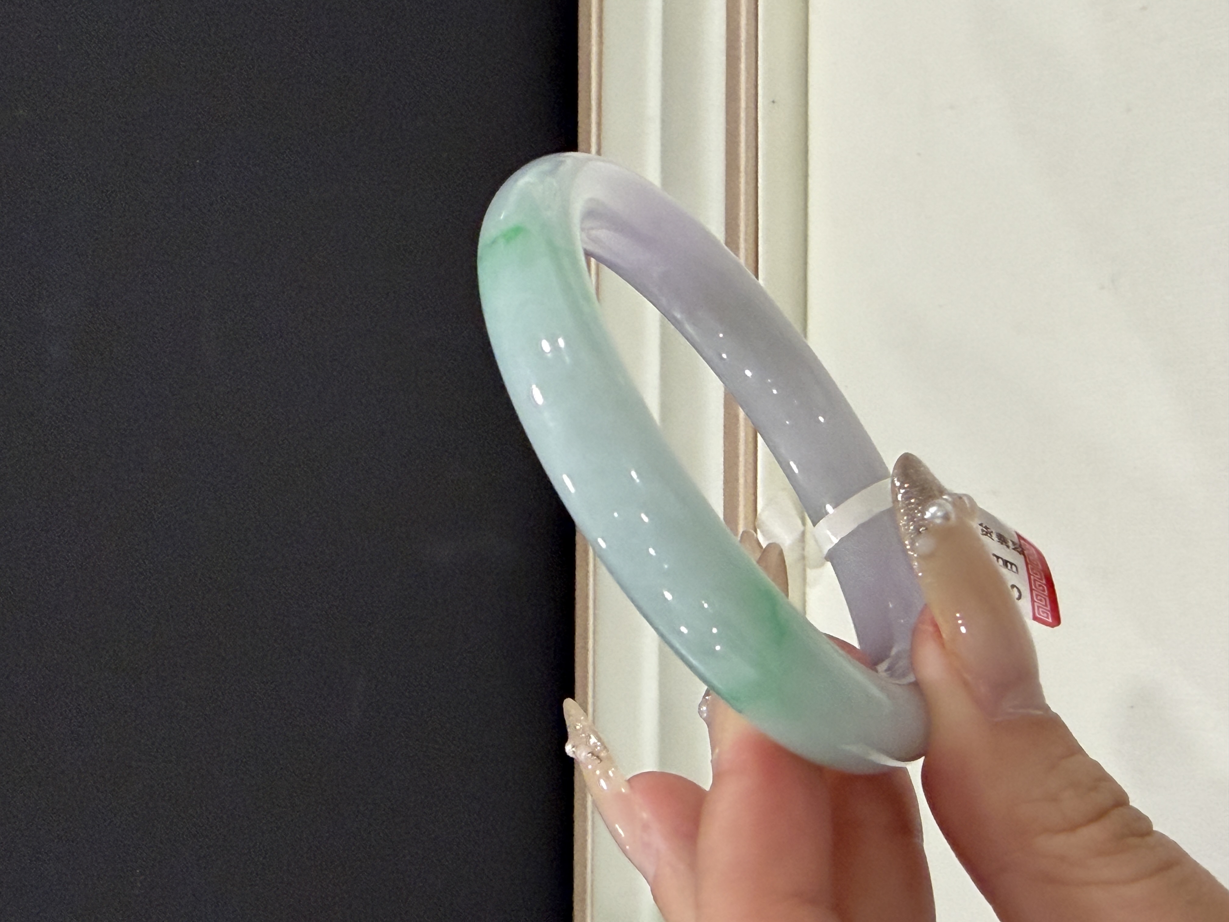 52*10*8mm 圆条 冰春彩 (51/52/53圈口合适) 有紫有绿一生富裕 种色兼备的一支 有纹但不扣手不明显 附证书与鉴赏期