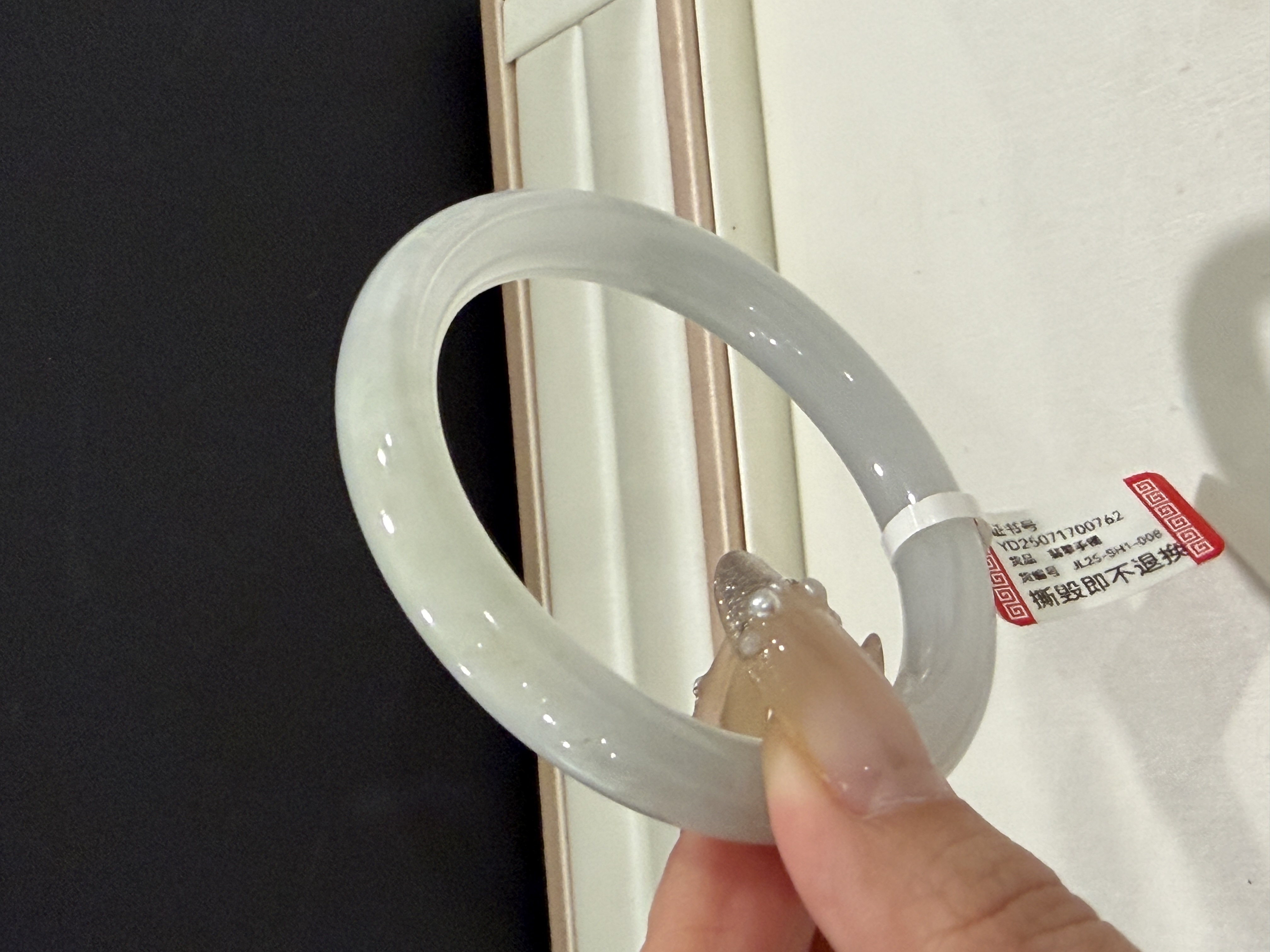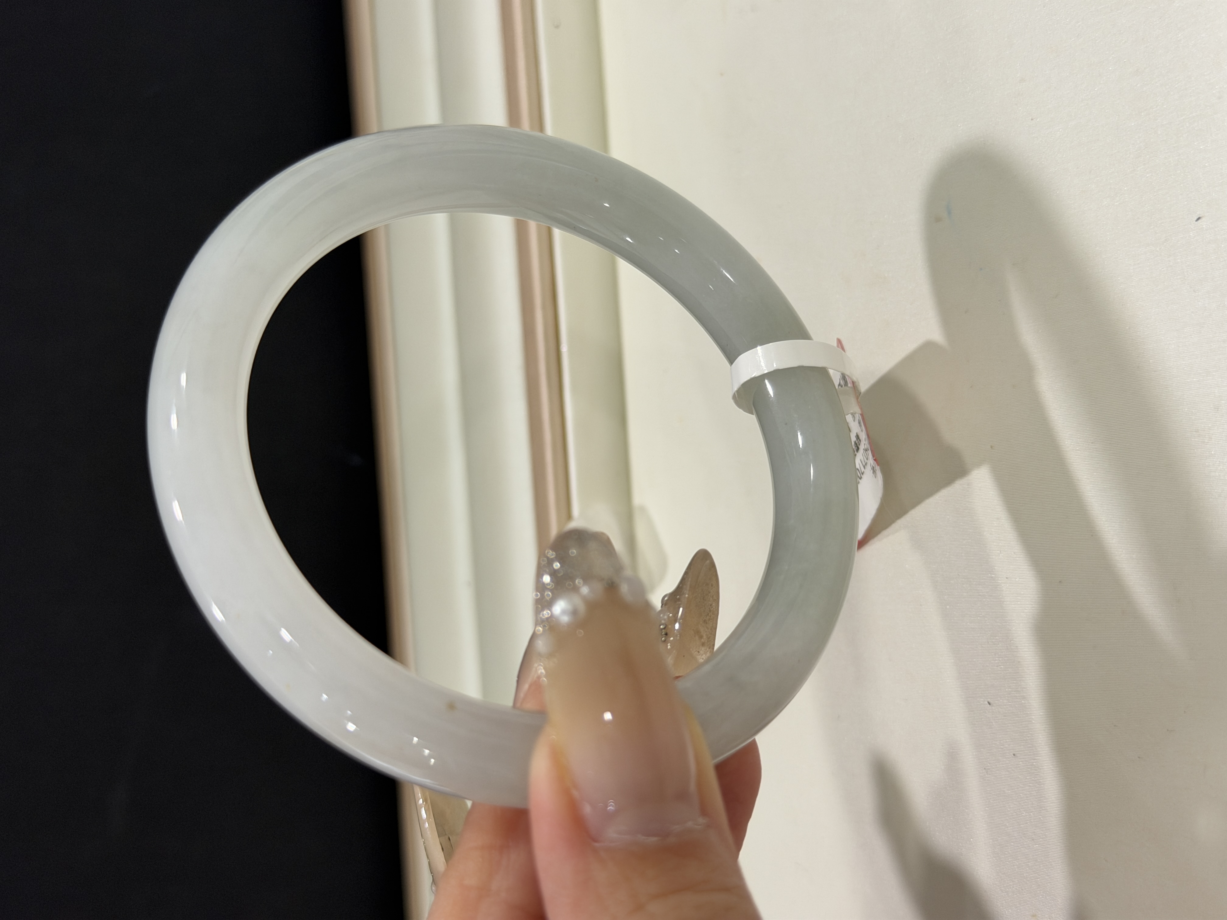 53.6*9*8mm 圆条 白冰月光 种水好 细糯起胶 微微透手 53/54/55 圈口可戴 附证书与鉴赏期