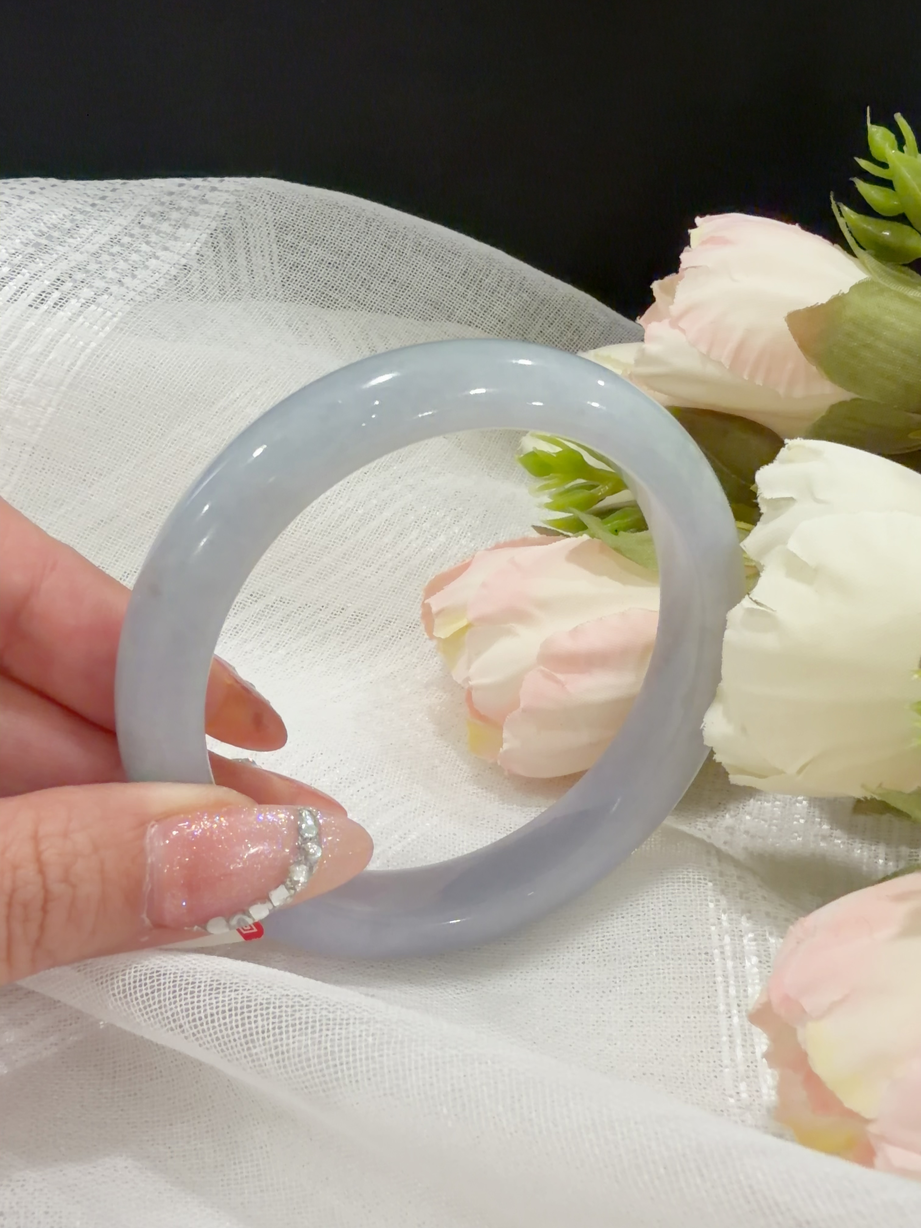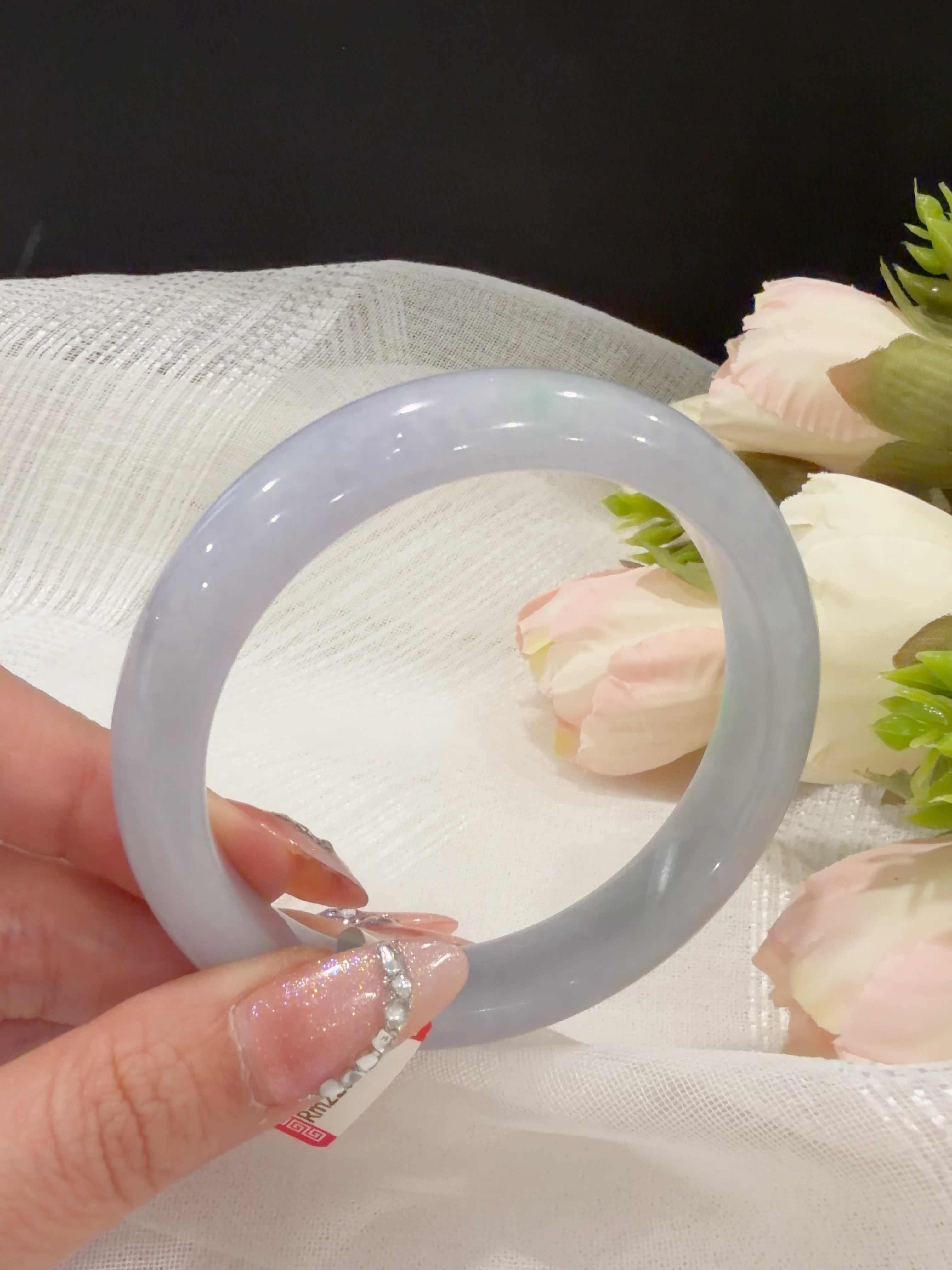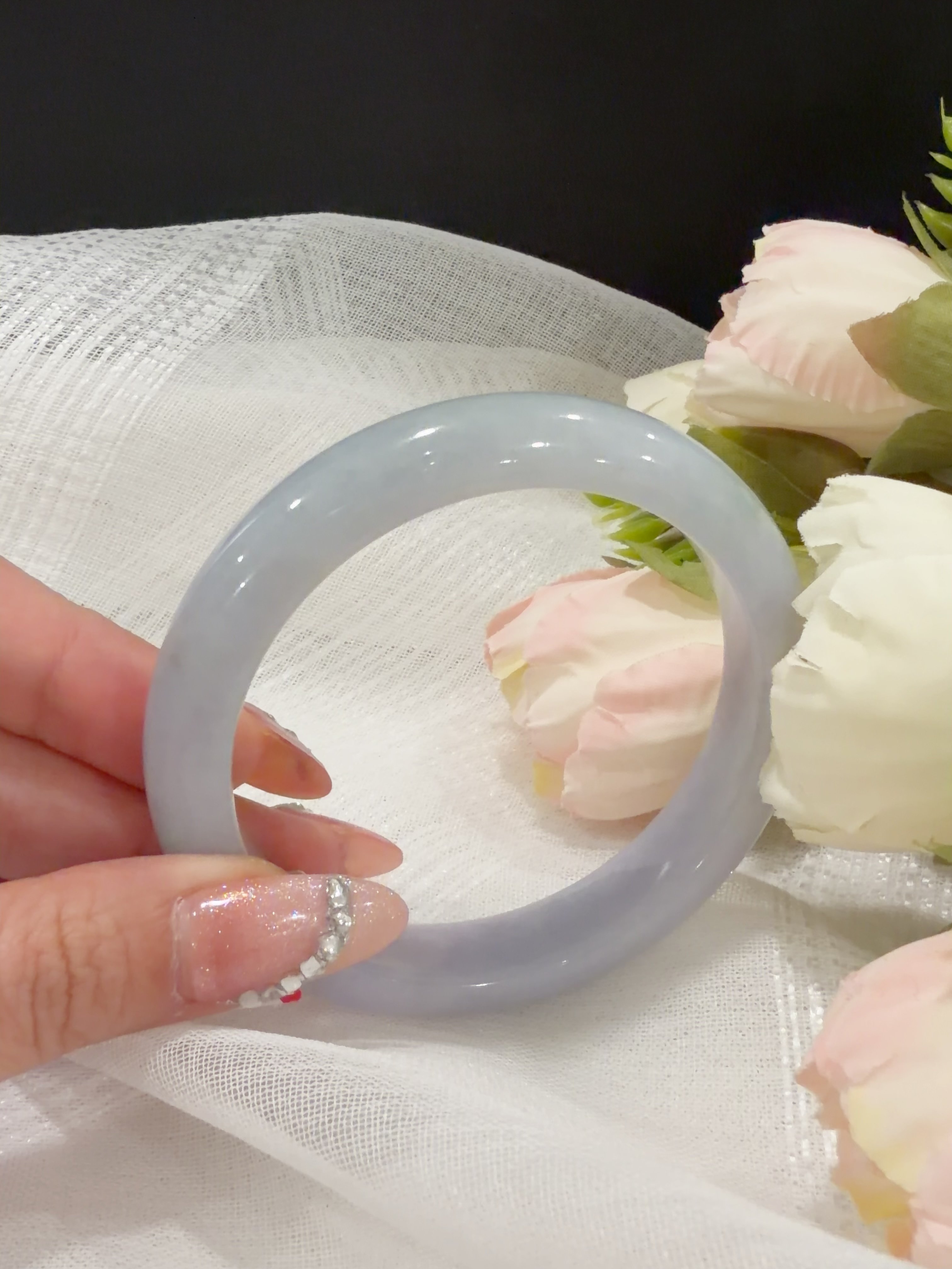 这只是很正的蓝紫色~ 不是艳紫,是高级烟紫蓝调 颜色柔和不艳自带冷调高级感, 上手很显白的一支 ✨ 手镯细节内容⤵️ 尺码:56*11*9mm (55/56/57圈口合适) 镯型:正圈 颜色:蓝紫色 证书编号:YD25022500977 鉴赏期: 3天