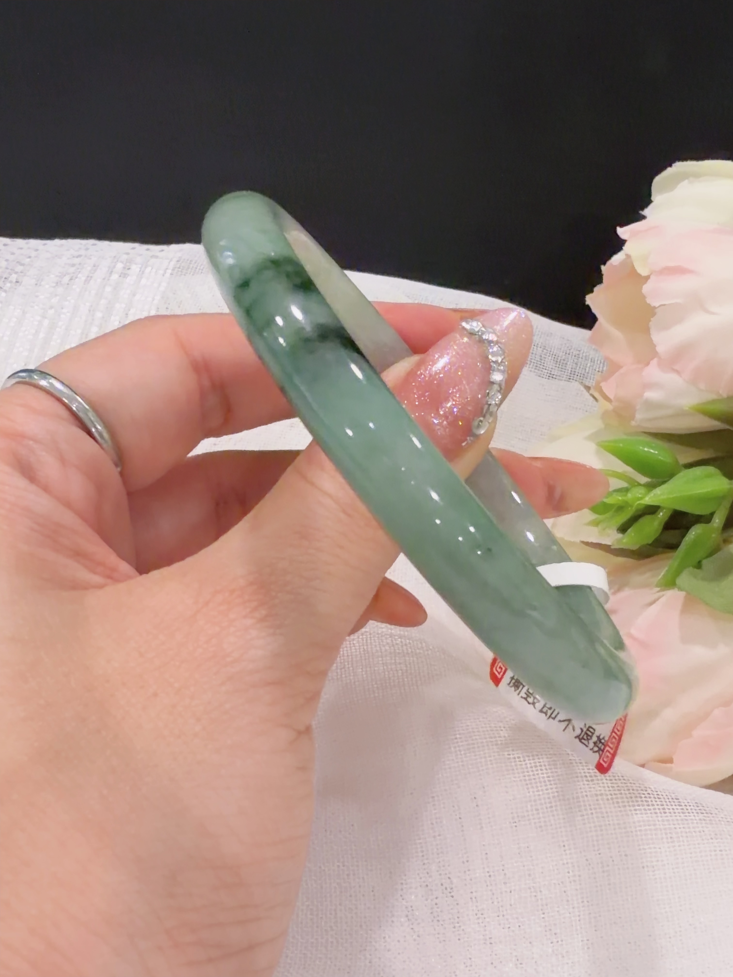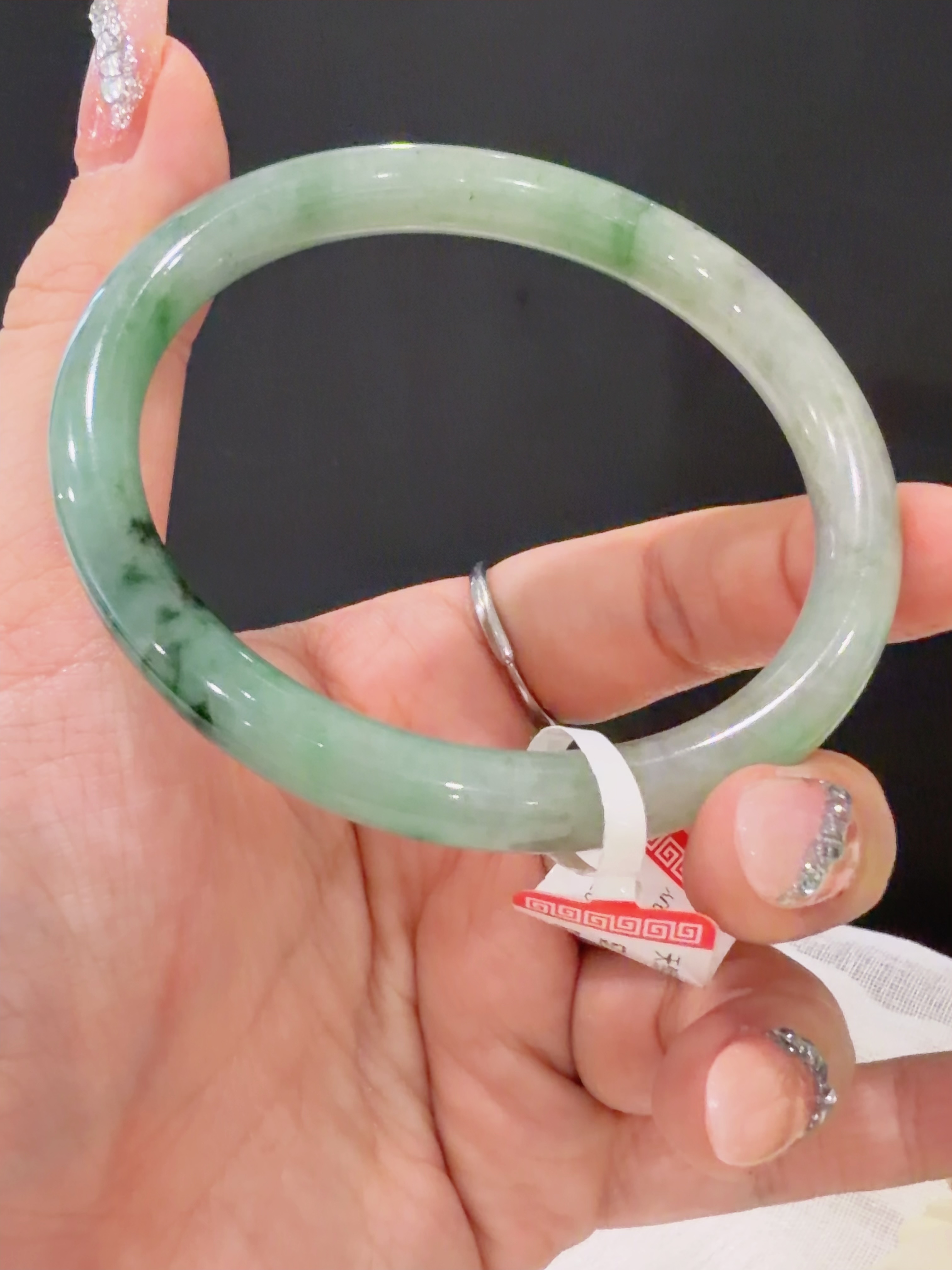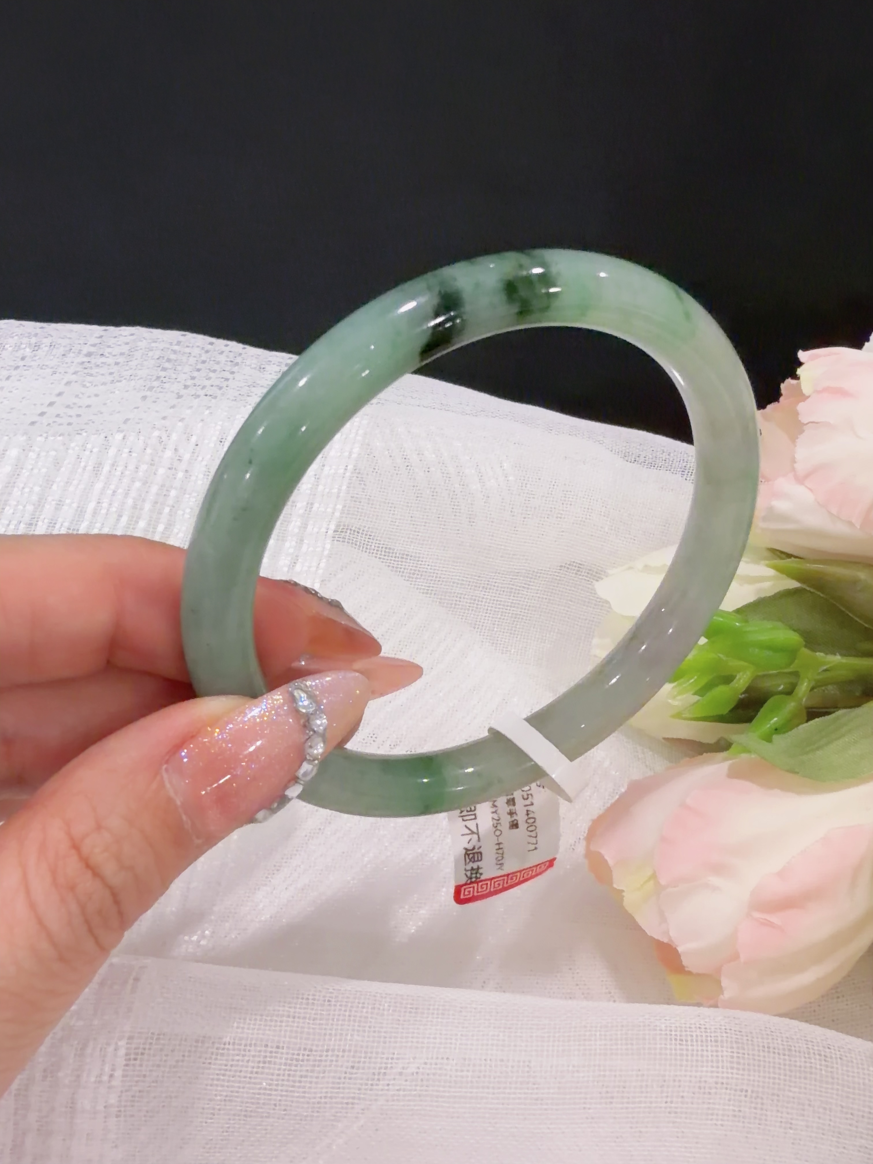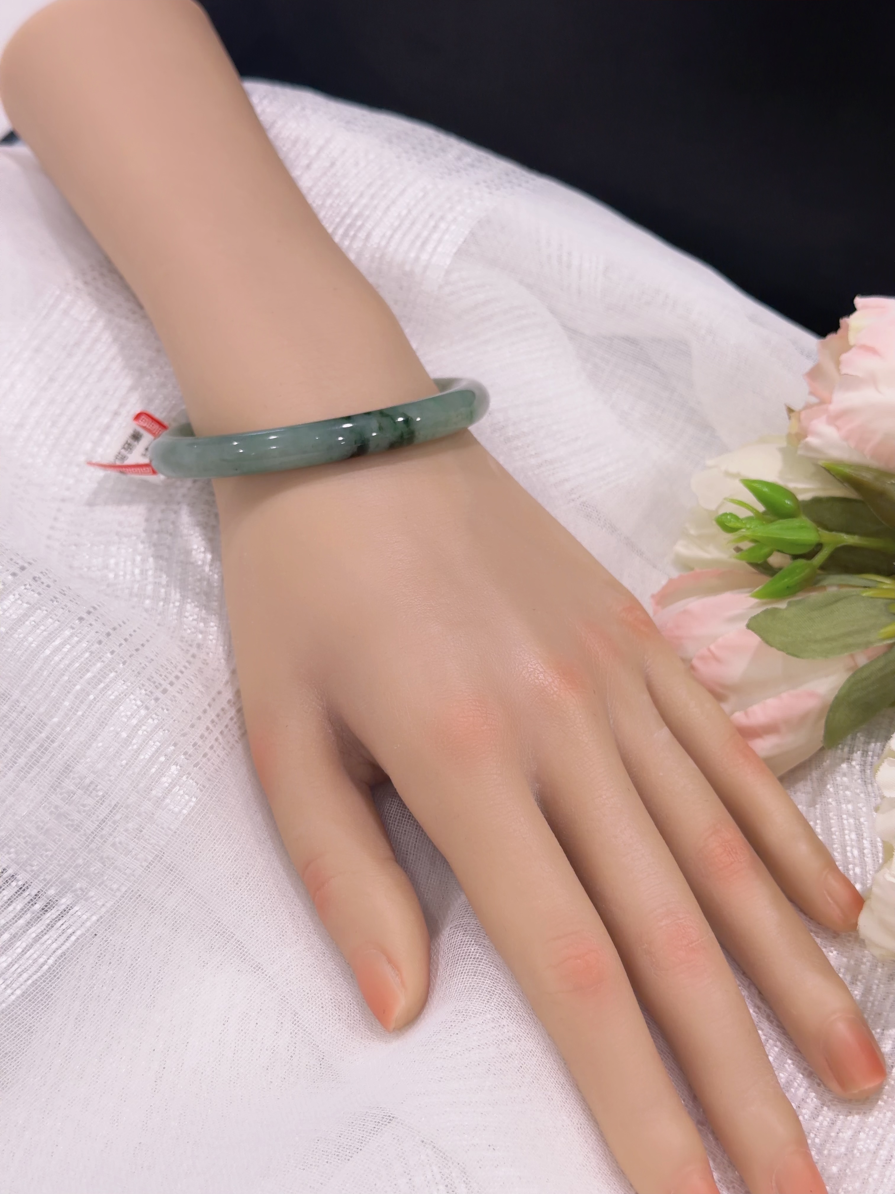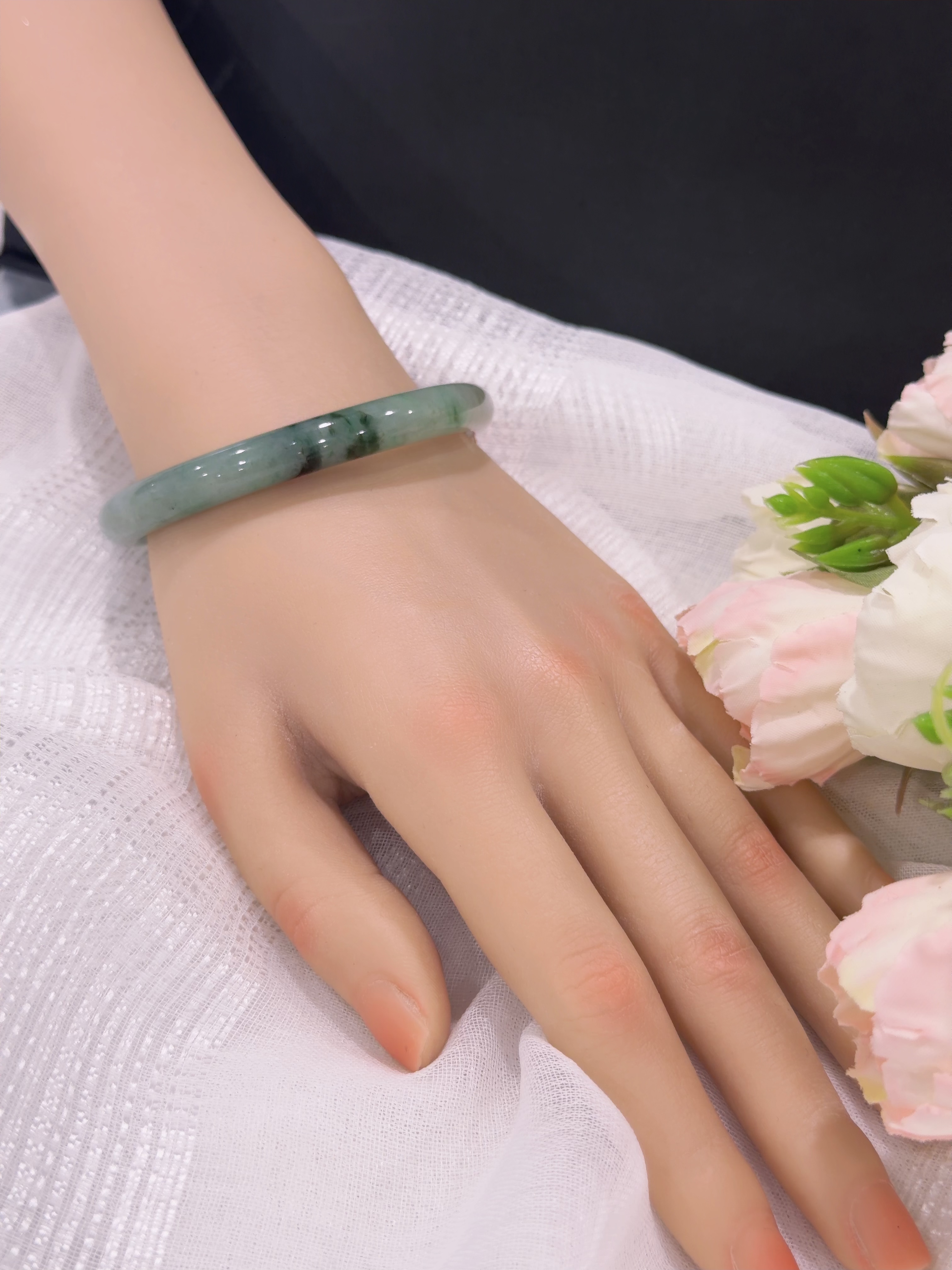 57圆条飘花翡翠手镯