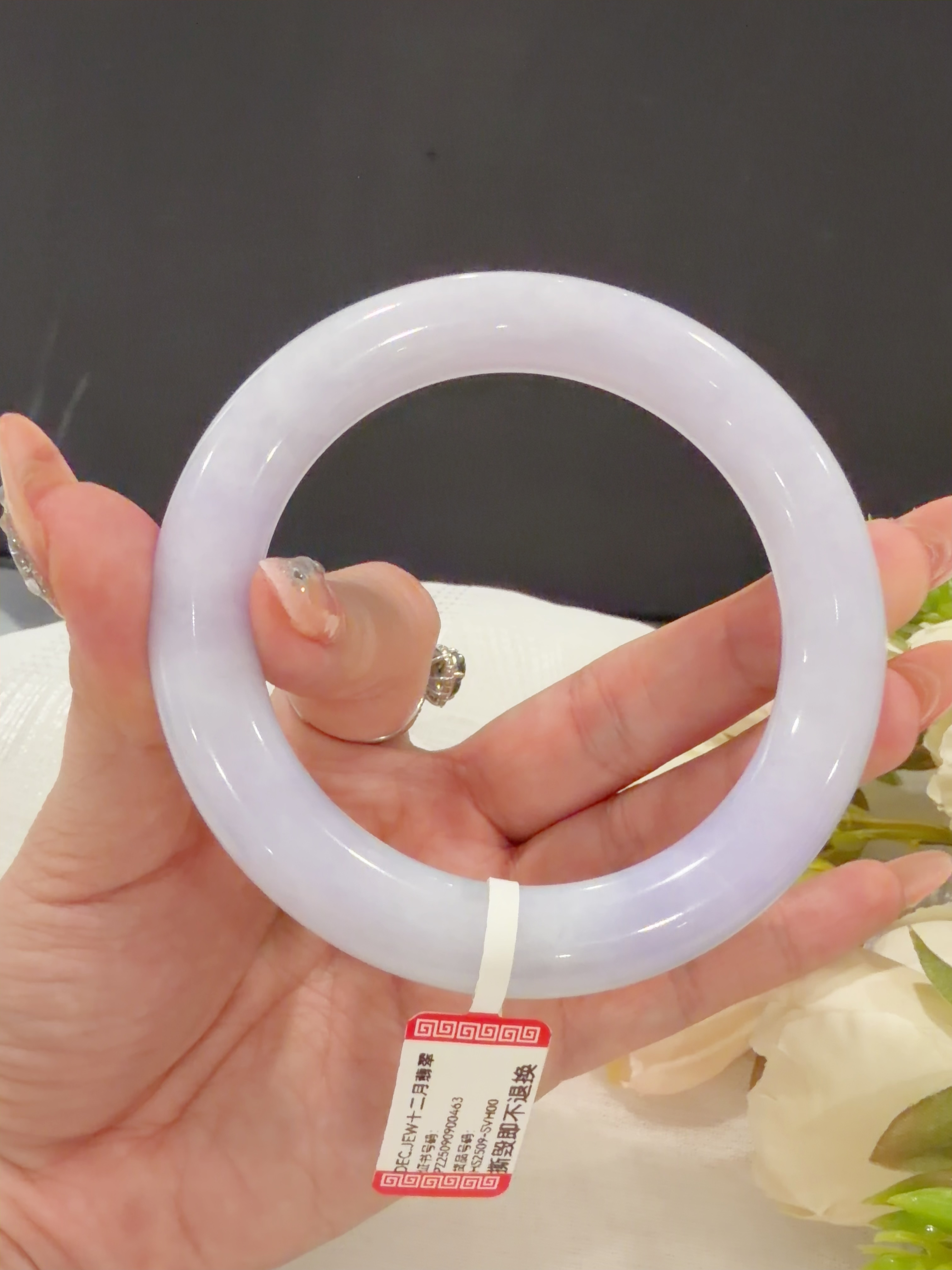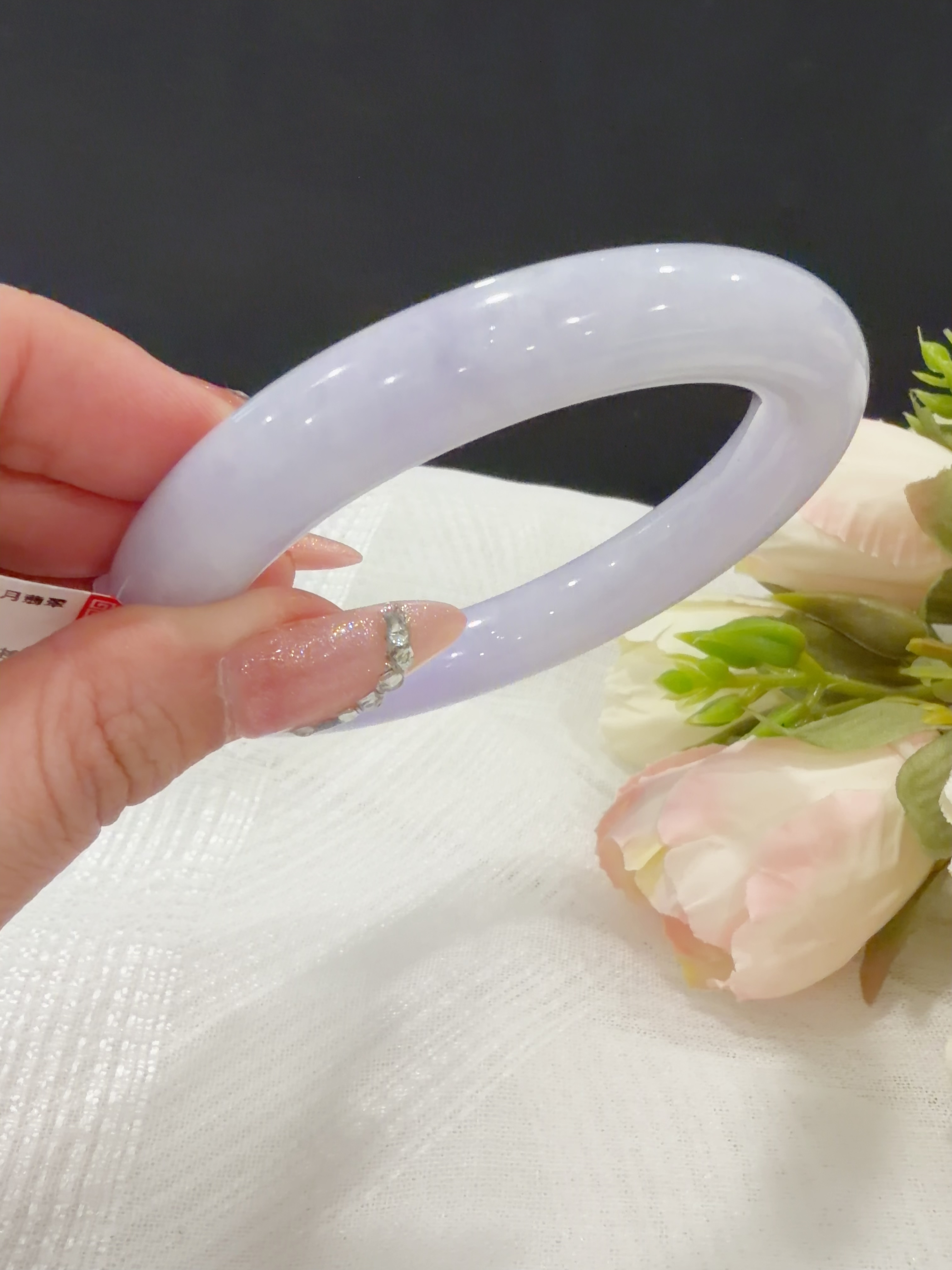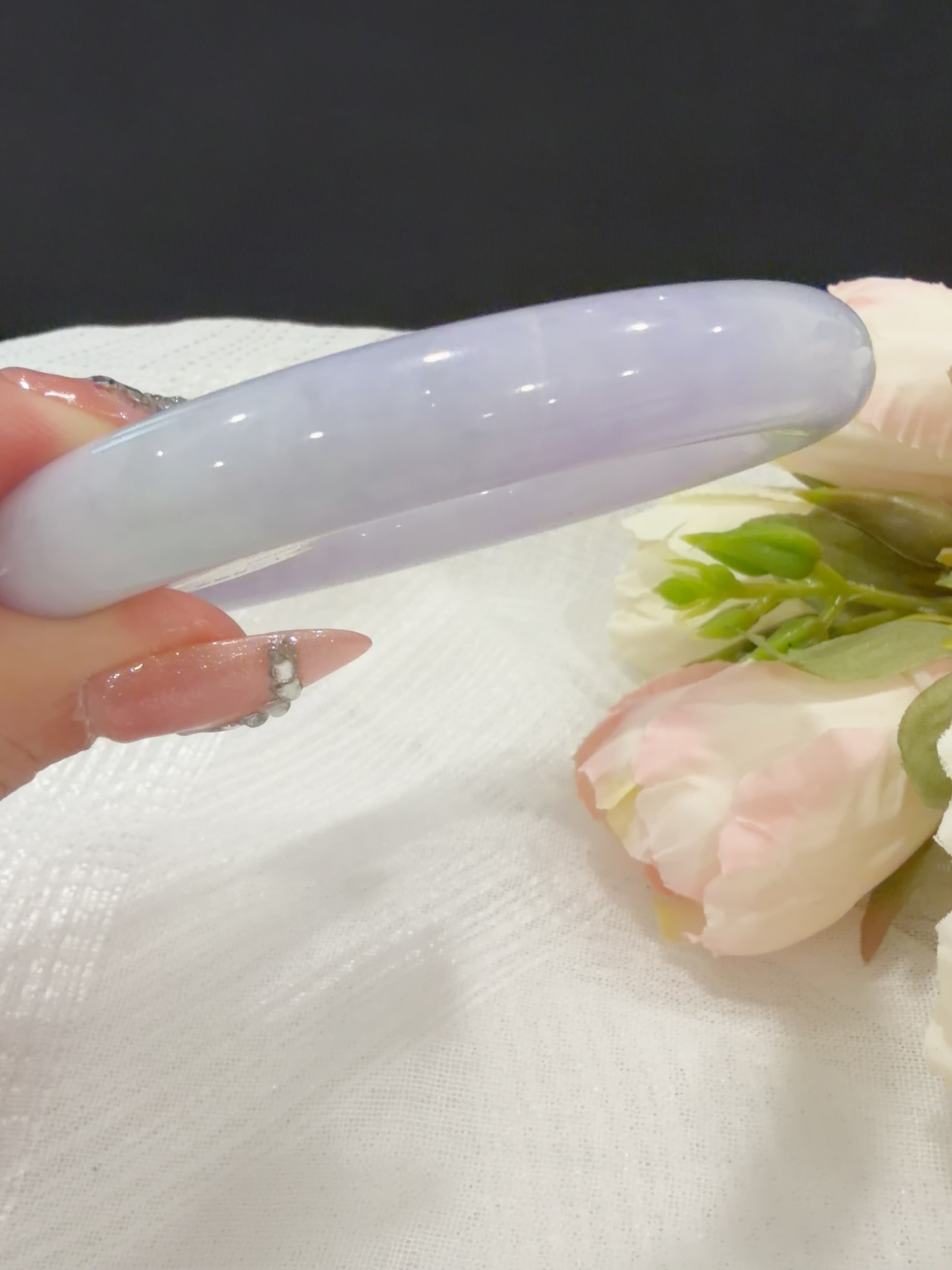 这只胖圆条真的很显贵! 紫罗兰底,紫翡的地方见光不失色 颜色干净、条形饱满 喜欢温柔高级感的别错过~ 备注: 有纹但不扣钱手,也不影响牢固性 手镯细节内容⤵️ 尺码:57*11*11mm 镯型:圆条 颜色:紫色 证书编号:PZ25090900463 鉴赏期: 3天