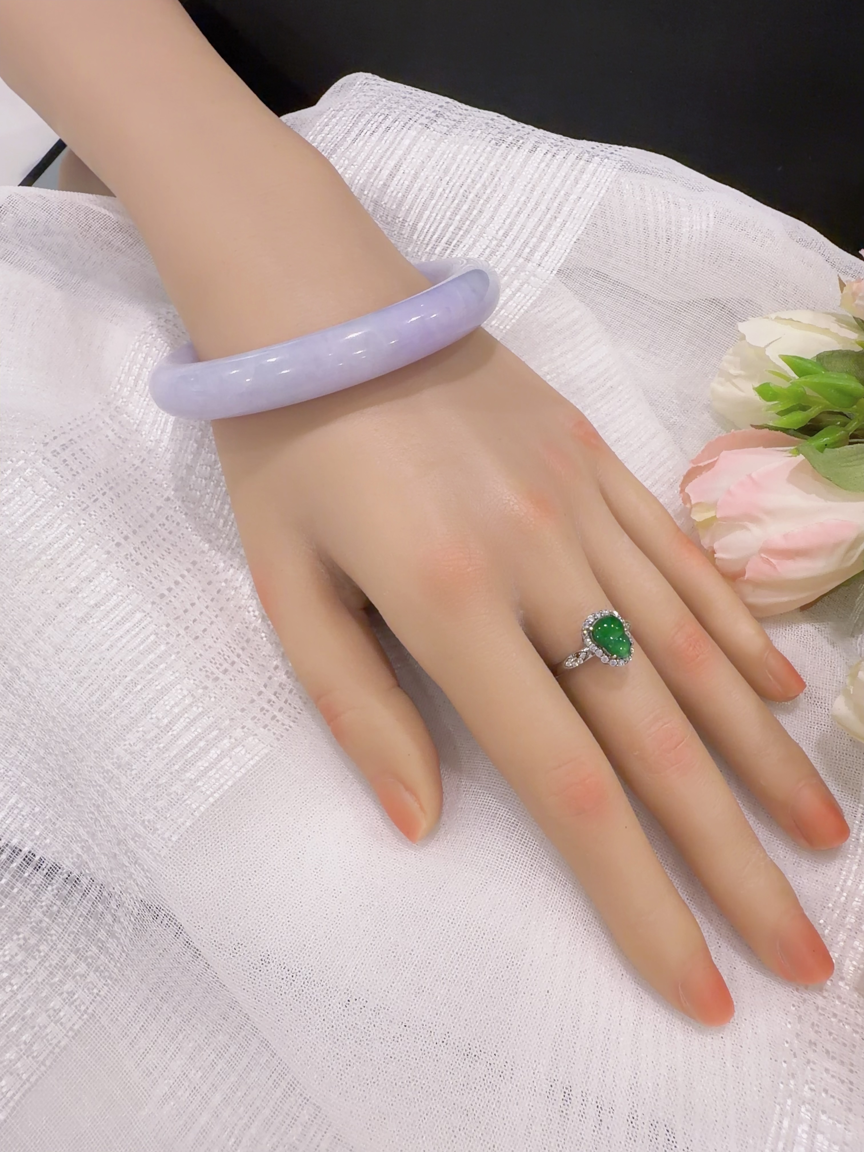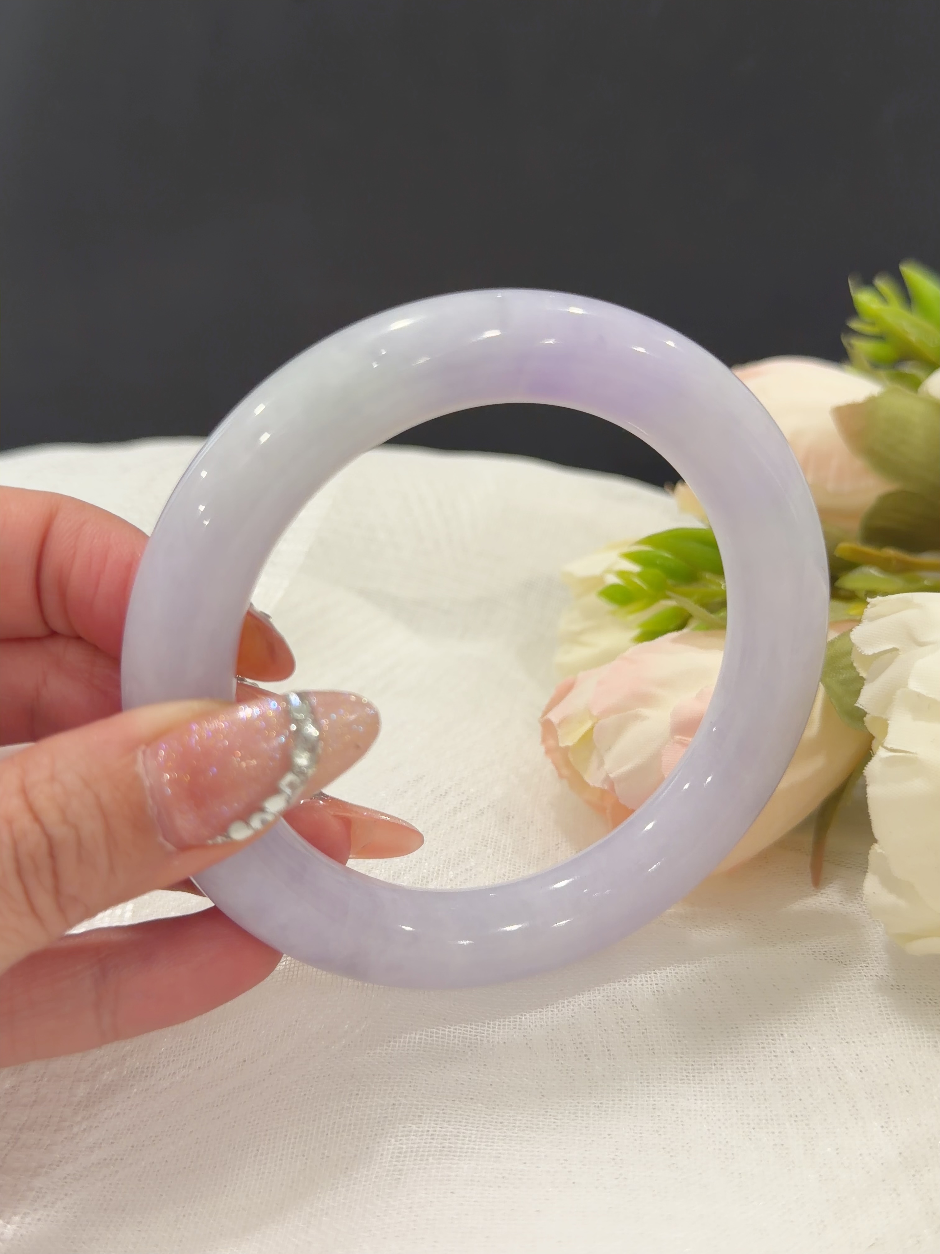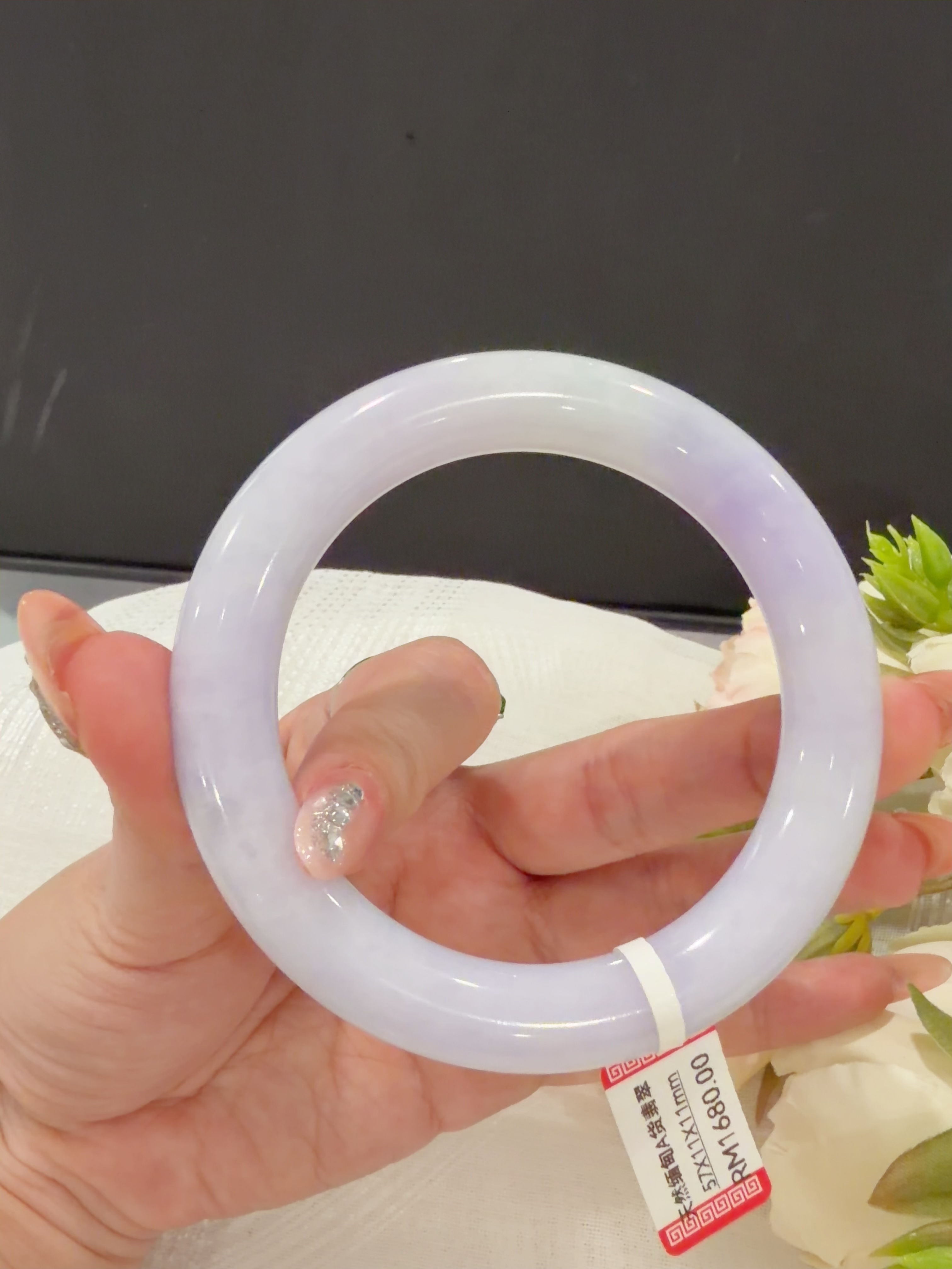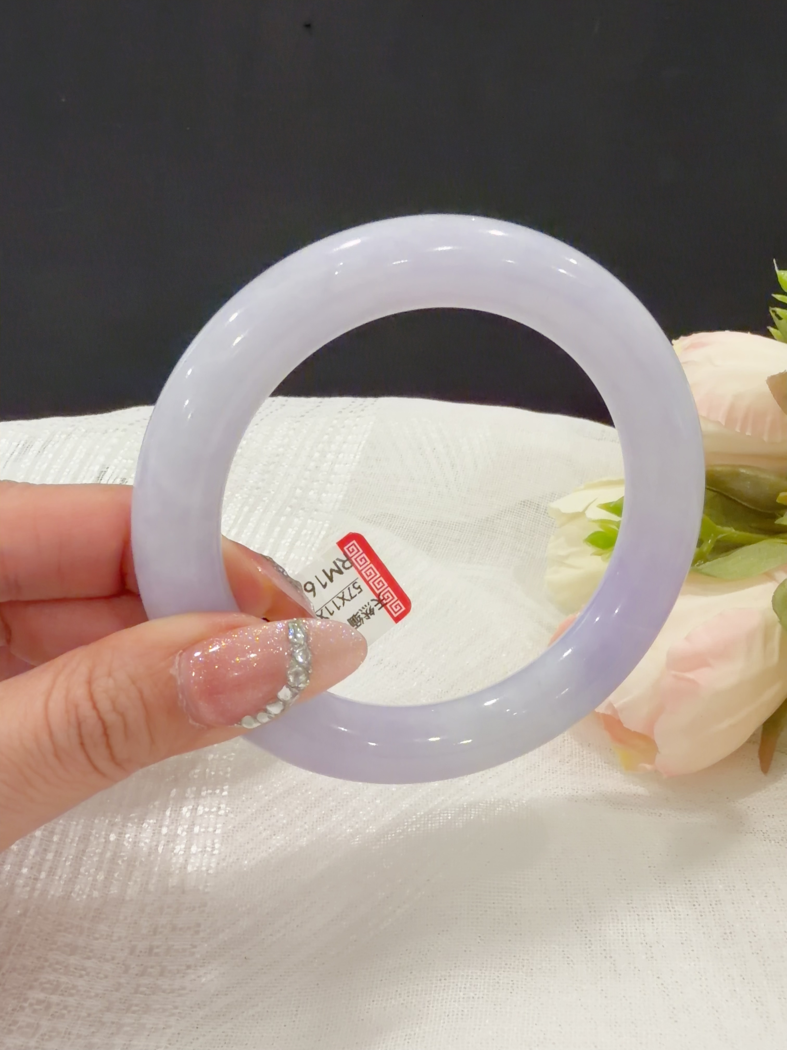 这只胖圆条真的很显贵! 紫罗兰底,紫翡的地方见光不失色 颜色干净、条形饱满 喜欢温柔高级感的别错过~ 备注: 有纹但不扣钱手,也不影响牢固性 手镯细节内容⤵️ 尺码:57*11*11mm 镯型:圆条 颜色:紫色 证书编号:PZ25090900463 鉴赏期: 3天